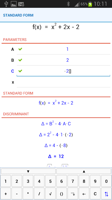Dengan Fungsi NaN Quadratic anda boleh mengira: