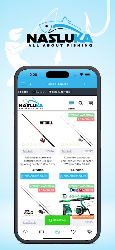 Rangkaian produk yang disokong meliputi semua jenis penangkapan ikan yang diketahui dan diamalkan di Bulgaria - apungan, berputar, penyuap, memancing ikan mas, memancing di laut, memancing dasar, dsb.