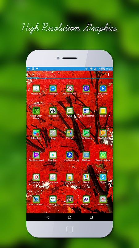 Tema dan Pelancar Alam Hijau ialah tema yang cantik dan menarik untuk telefon pintar anda. Gunakan tema ini untuk menikmati hiasan latar hijau dan indah alam semula jadi hijau dalam skrin mudah alih anda. ia benar-benar percuma dan akan menjadi. Hanya nikmati kertas dinding dan himpunan ikon yang direka bentuk