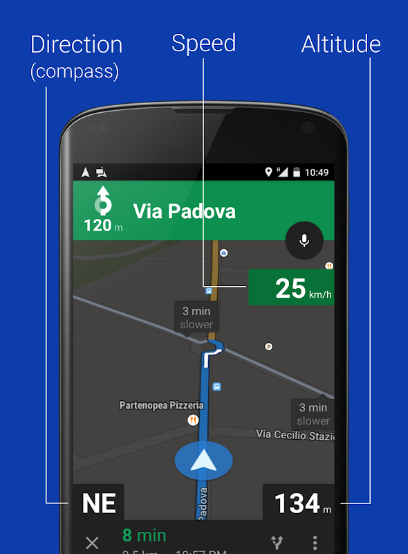 NavMeter allows you to display speed, altitude, compass, and coordinates indicator over the navigators that don’t provide this informations.