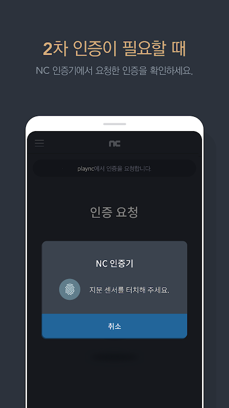 - NC Authenticator ialah perkhidmatan keselamatan yang menggunakan maklumat biometrik seperti cap jari untuk mengesahkan hanya pengguna apabila menggunakan permainan dan perkhidmatan yang disediakan oleh NCSOFT.
