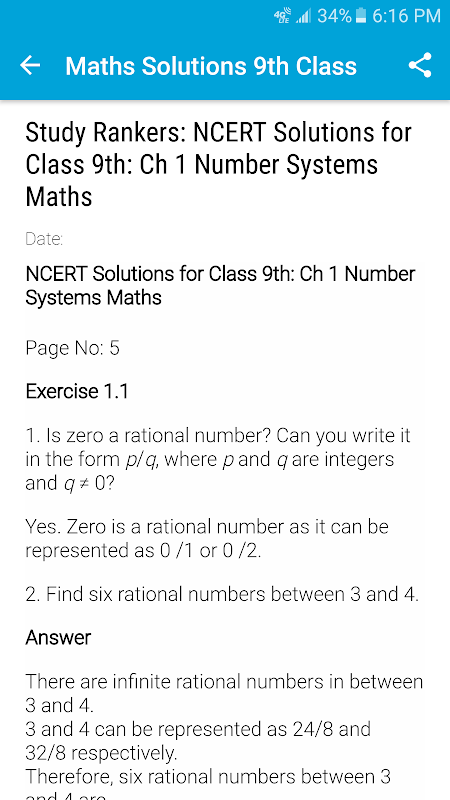App mengandungi jawapan semua bab Matematik yang termasuk dalam Buku CBSE Class 9 NCERT.