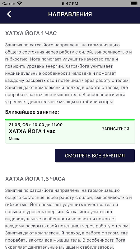 Kemungkinan merakam, membatalkan pendaftaran untuk kelas, melihat jadual, berita, sejarah pembayaran dan lawatan terbuka.
