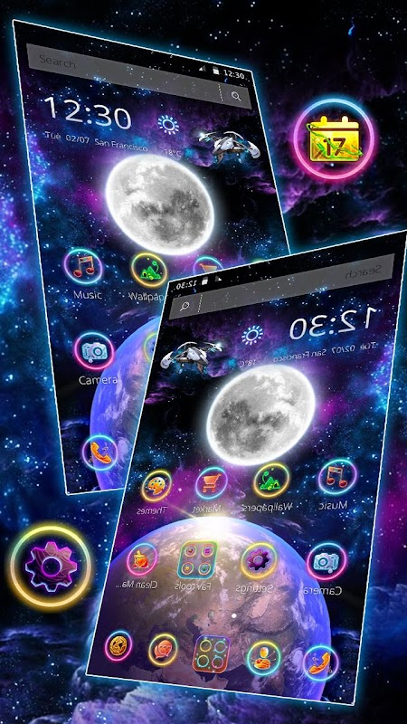Earth Moon theme contains an Parallax wallpaper and tens of Neon icons covering most of the applications you usually use. With this Neon theme you get to always keep pace with the newest and most trendy topic.