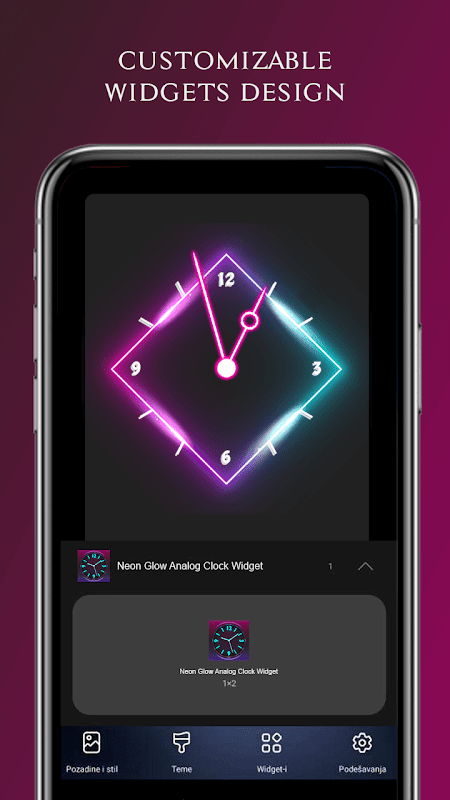 * Tetapkan widget jam tangan neon pada skrin utama.