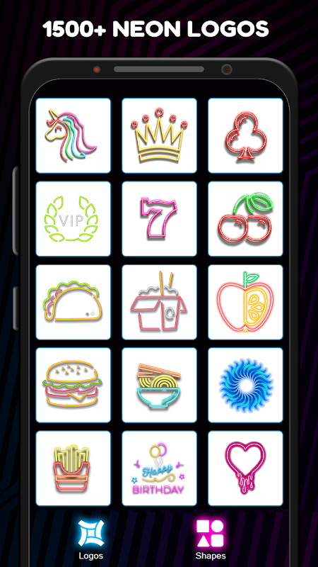 Aplikasi pembuat logo neon, pengguna boleh mengedit dan menyimpan logo neon dalam galeri peranti dan pengguna juga boleh berkongsi dan menyimpan logo dengan rakan atau di media sosial melalui aplikasi tanda logo neon.