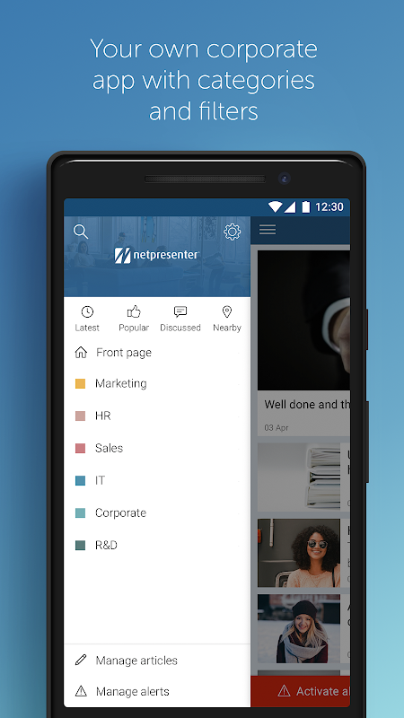 Aplikasi Korporat & Keselamatan Netpresenter menggabungkan komunikasi korporat yang kukuh dengan perkhidmatan pemberitahuan amaran profesional. Secara automatik membawa berita dalaman anda, peringatan, pemberitahuan push, berita berita dan tajuk SharePoint ke peranti pekerja anda, di mana sahaja mereka berada! Lebih banyak maklumat: www.netpresenter.com