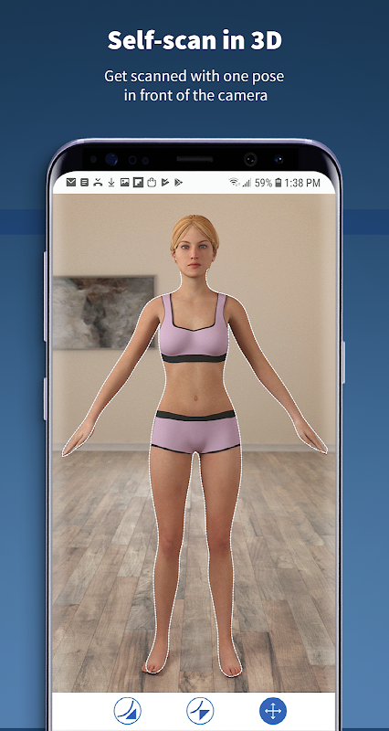 Ambil hanya satu pose di hadapan kamera peranti untuk mendapatkan avatar 3D tepat anda dengan semua ukuran badan.