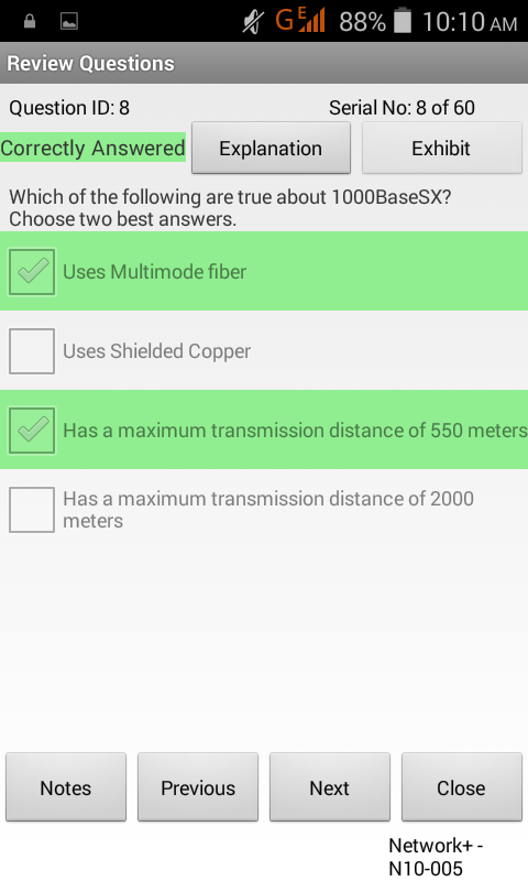 Network+ Exam Sim menyediakan 500+ soalan latihan dengan kad kilat terperinci