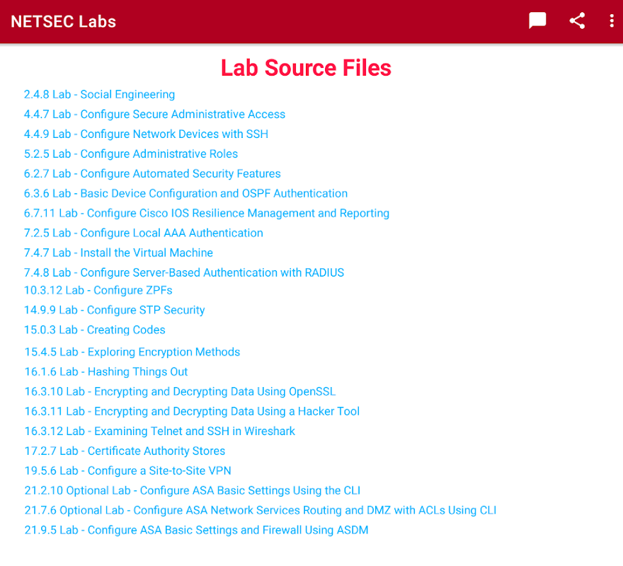 Many modules contain some way to practice and assess understanding, such as a lab or a Packet Tracer activity. These module-level activities provide feedback and are designed to indicate the learner’s mastery of the skills needed for the course. Learners can ensure their level of understanding well before taking a graded quiz or exam.