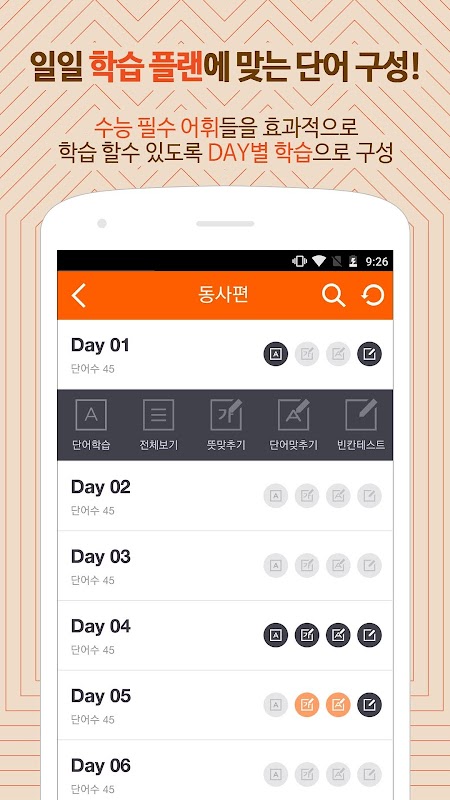 1. Pembelajaran mengikut HARI: Ia terdiri daripada pembelajaran mengikut HARI supaya anda boleh mempelajari perbendaharaan kata penting untuk CSAT dengan berkesan.