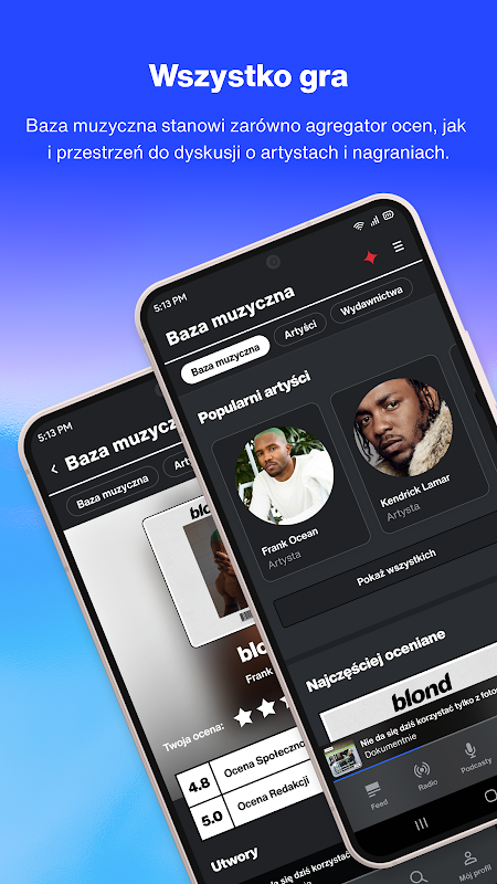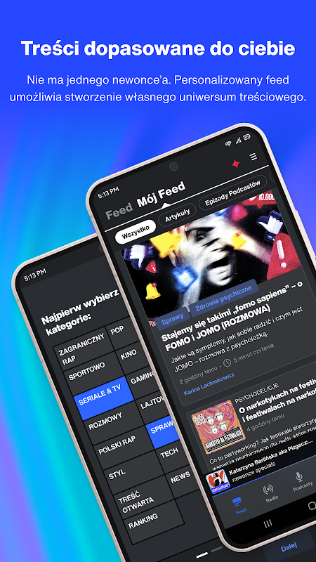 Anda mendapat semua yang baru dalam satu apl. Hanya di sini anda akan menemui kandungan yang mendalam tentang rap Poland dan asing, topik yang terlibat secara sosial, analisis berharga tentang realiti di sekeliling kita, bahan yang ditulis dengan banyak ironi, dan anda juga akan menemui bersama kami dunia pawagam dan teknologi baharu. Anda boleh membaca, tetapi juga mendengar, kerana radio kami menyiarkan 24/7. Hos berkarisma, pakar dan tetamu yang menarik, dan lebih-lebih lagi, muzik - jenis yang anda mahu dengar!