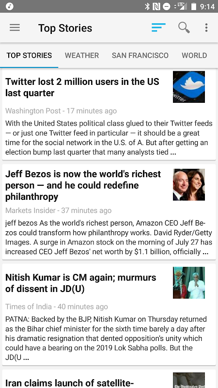 Pembaca Berita memaparkan berita dari Berita RSS dengan mudah dan pantas.