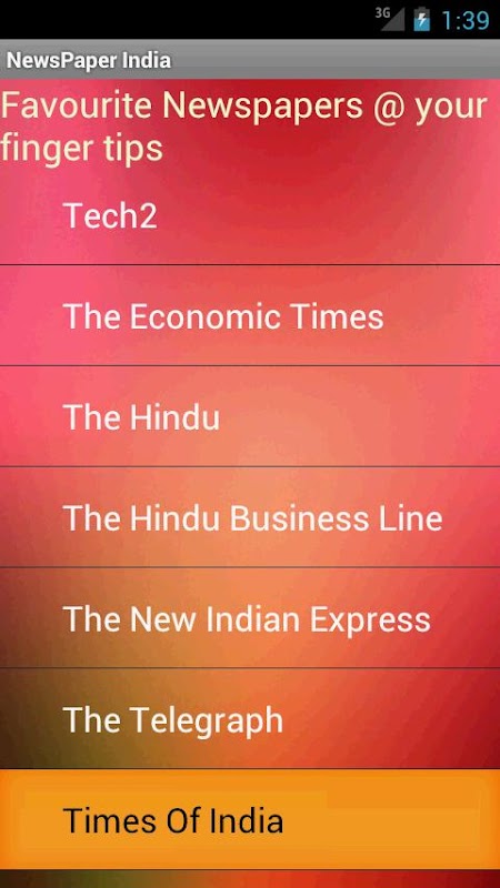-It includes all your favorite Paper like The Times Of India,The Hindu,The Economic Times,CricInfo and many other regional Daily(Hindi,Tamil,Telugu,Malayalam,Kannada,Punjabi,Odia).