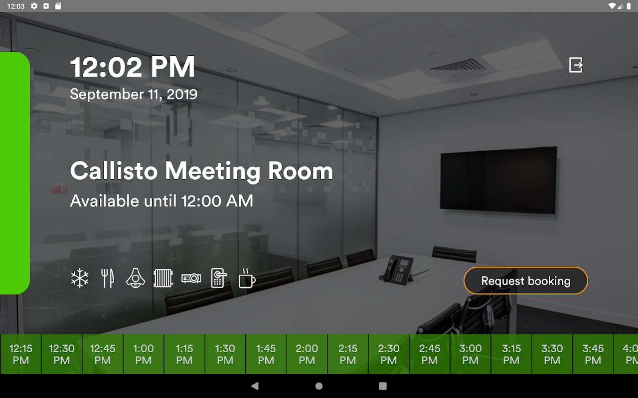 NexBoard menghubungkan kepada Nexudus belakang anda untuk menunjukkan pertemuan yang akan datang, ketersediaan paparan, menyelaras tempahan bilik persidangan dan membolehkan pengguna meminta tempahan terus dari peranti.