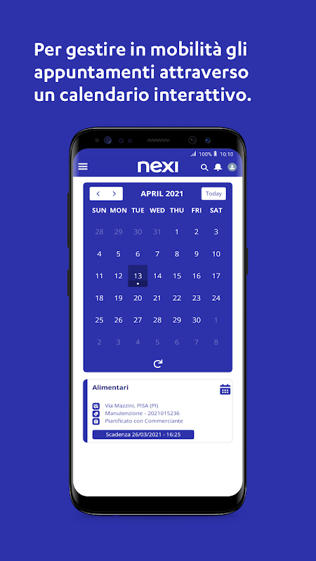Nexi Tech adalah aplikasi baru yang dikhaskan untuk pemasang POS yang bekerja bagi pihak Nexi. Aplikasi ini membolehkan anda menguruskan proses pemasangan, penyelenggaraan dan penggantian POS, memantau aktiviti dan sumber gudang anda dalam masa nyata