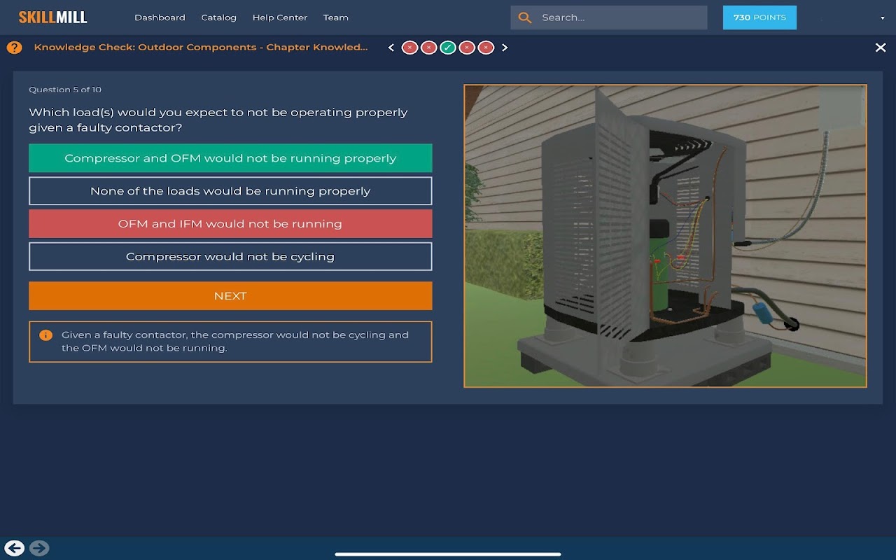 NextPoint Learning is an online, on-demand learning experience platform delivering a growing catalog of courses for the skilled trades industry. Get the training you need to reach that next level in HVAC. Plus, our catalog keeps growing. You’ll find hundreds of hours of training including video and scenario-based exercises across different equipment types. Hone your skills and be ready for whatever the real world throws at you.