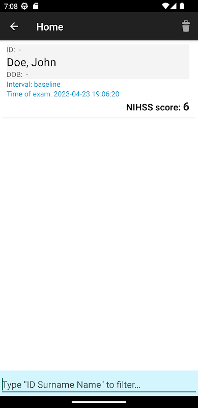 Menilai, mengira, menyelamatkan, mengeksport nilai NIHSS, mNIHSS, sNIHSS-8 dan sNIHSS-5.