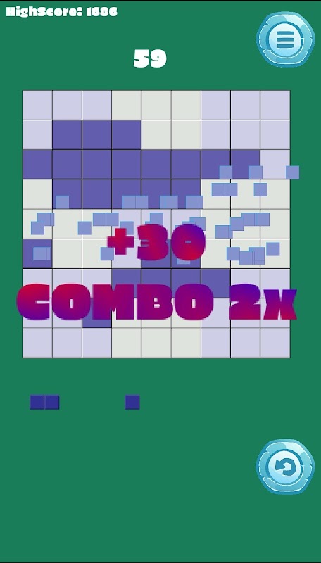 Matlamatnya adalah untuk menyesuaikan bentuk ke tempat kosong yang sesuai dan mencipta 9 blok berturut-turut, atau dalam lajur, atau sebagai blok 3x3, kerana kes itu bongkah ais kiub ini akan hilang. Anda boleh mendapatkan berbilang mata untuk hit kombo, apabila anda mencipta lebih daripada satu 9 blok (mendatar, menegak, 3x3) dengan satu peletakan.
