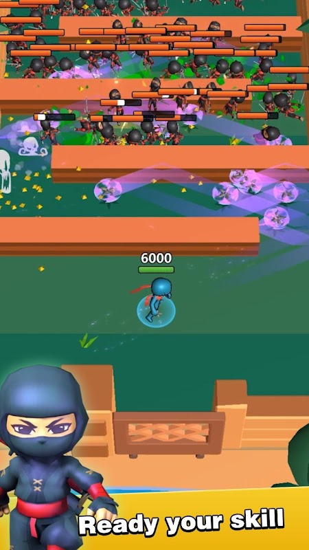 Welcome to the Ninjia Mania! Your objective is to be the final survivor of each level! Experience the thrill in the battle with various kinds of monsters! Try to improve skills as fast as possible as a master Ninjia. Watch out your front enemy and build your own barrier to defeat them!