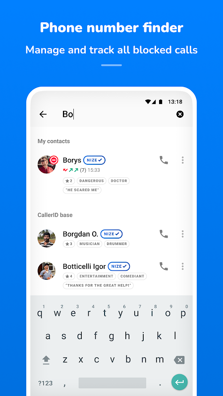 Nize ialah pengesan ID pemanggil yang mudah digunakan dan apl penyekat panggilan spam untuk Android, yang membolehkan anda mendapatkan maklumat hubungan tentang siapa yang memanggil anda, menyekat panggilan spam & percubaan robocall, menapis panggilan daripada nombor yang disenarai sekat dan banyak lagi.