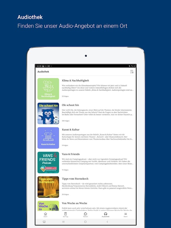 [Perpustakaan audio] - Dengar podcast yang menghiburkan, ringkasan berita bermaklumat dan artikel audio yang menarik satu demi satu atau sebagai senarai main peribadi.