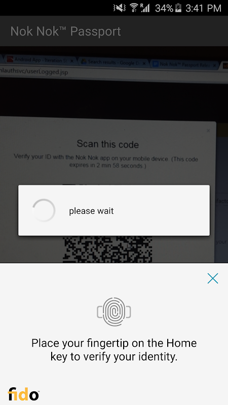 Passport allows you to use out-of-band authentication to authenticate to selected websites on a laptop or desktop computer. You can use the fingerprint sensor on FIDO UAF-enabled devices (such as the Samsung Galaxy S® 6, Fujitsu Arrows NX, or Sharp Aquos Zeta) or enter a simple PIN on non-FIDO enabled devices. You can enroll your Android device by using Passport to scan a QR code displayed by the website, then touch the fingerprint sensor or enter a PIN. Once enrolled, you can authenticate using a similar method. Alternatively, the website can send a push notification to your Android device and trigger the authentication.