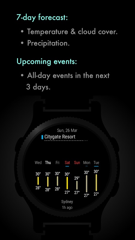Pantau cuaca dan kalendar anda dengan Nomad Watchface untuk Wear OS.