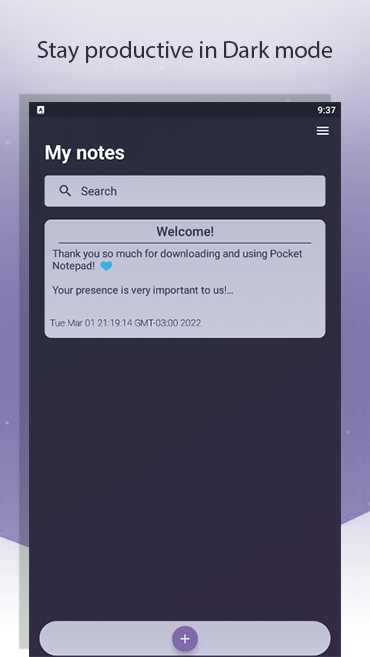 Pocket Notepad keeps all your notes saved in the cloud and you can access them whenever you want at no cost. With a simple and pleasant interface, having a light and dark theme, you feel comfortable to explore your inspirations without any distractions.