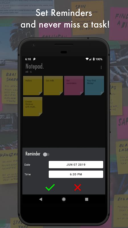 Now you can easily take Notes with Notepad. Create unlimited Notes in the form of beautiful Stickies. Multiple colours in notes helps organise your notes like never before.