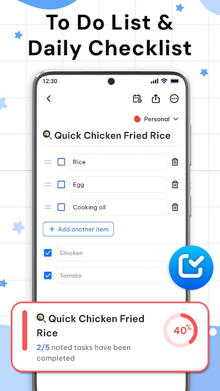 - Cipta senarai tugasan harian dan tandakan item yang telah siap dengan mudah.
