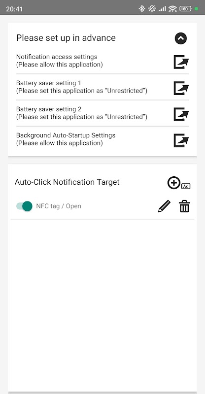 Jika anda perlu mengklik butang buka dalam pemberitahuan apabila anda membaca teg NFC, anda boleh mengautomasikan operasi itu dengan menggunakan aplikasi ini.