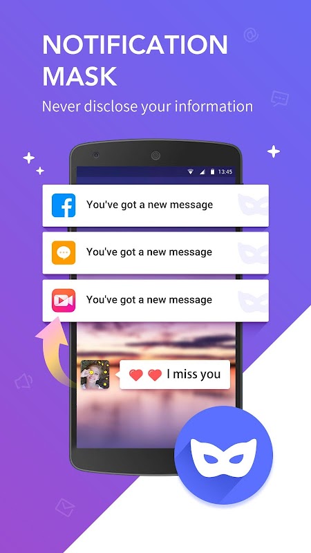 Hidethe notification title and content of the app, showing only the app's icon and number of notifications. When the app is set to normal mask, will hide notification content of the app, but will still show the hidden messagessent by the app. Normal mask is suggested to mask private messages of common socialapps, such as Whatsappmessages, Facebook messages, text messages, etc.