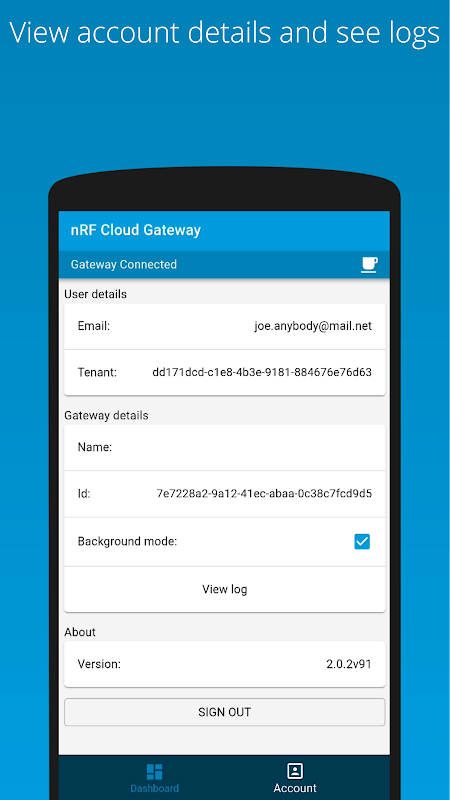 An Bluetooth Tenaga Rendah Gateway Android berasaskan untuk https://nrfcloud.com.