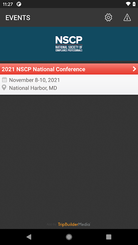 This TripBuilder EventMobile app is provided at no charge by The National Society of Compliance Professionals (NSCP). It was designed and developed by TripBuilder Media Inc. If you have any questions, or need any support regarding how to use this app, please submit a Support Ticket (located within the Help icon in the app).