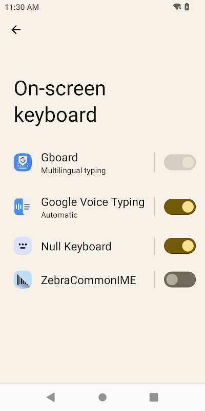 - Added entry for Null Keyboard to be opened from the System Settings from available input methods