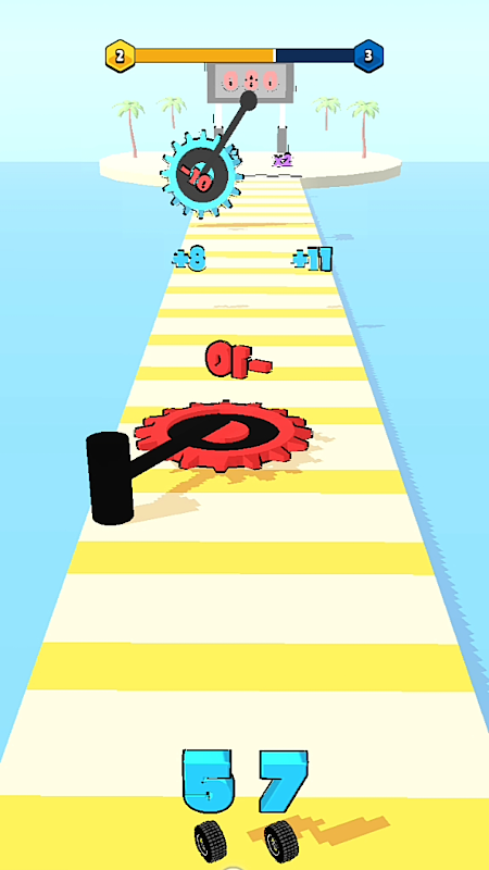 Leret skrin untuk membiarkan nombor berjalan ke hadapan, bergerak ke kiri dan kanan untuk mengelakkan halangan, dan gunakan penambahan, penolakan, pendaraban dan pembahagian untuk meningkatkan nilai nombor. Jangkakan terlebih dahulu bagaimana untuk memaksimumkan bilangan. Apabila sampai ke garisan penamat, nombor perlu lebih besar daripada nombor sasaran untuk berjaya melengkapkan tahap. Jika anda menemui nombor yang lebih besar daripada anda semasa proses, anda akan kehilangannya dan perlu memulakan semula.