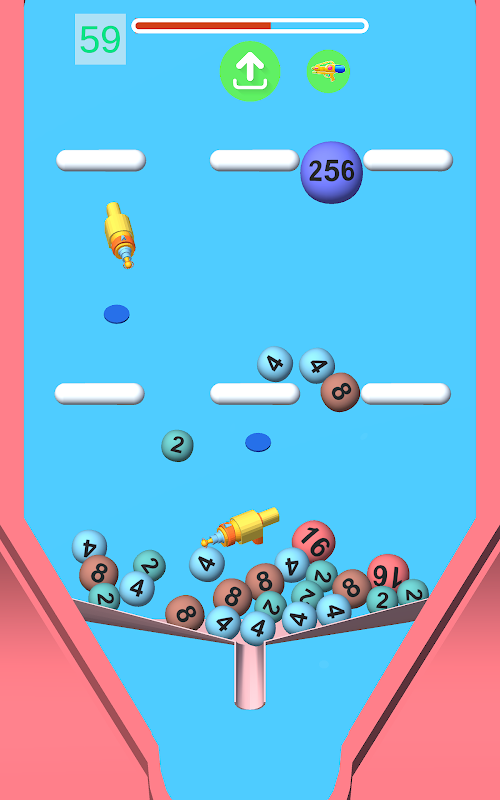 Anda perlu Kumpul 2 daripada setiap bola yang dijatuhkan ke tempat kejadian. Ketik pada setiap bola untuk memecahkan nombor kepada separuh sehingga anda tiba di 2, dan kumpulkan no 2 dalam setiap peringkat.