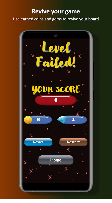 • Jangan sesekali kehilangan kemajuan anda. Bangkit semula dengan menggunakan duit syiling, permata, atau dengan iklan tontonan.
