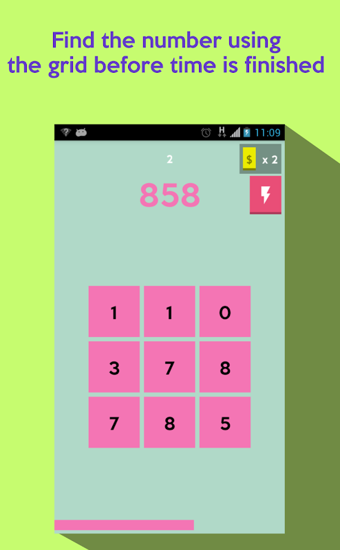 Number Rush! is a new competition that will put you to the limit. Find the number using the grid before time is finished. Level after level, the numbers vary, the colors change, the time decreases, the board grows.