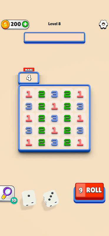 Matlamatnya adalah untuk mengumpul nombor dengan melukis segi empat tepat pada grid, memastikan jumlah nombor yang dipilih sepadan dengan jumlah dadu.