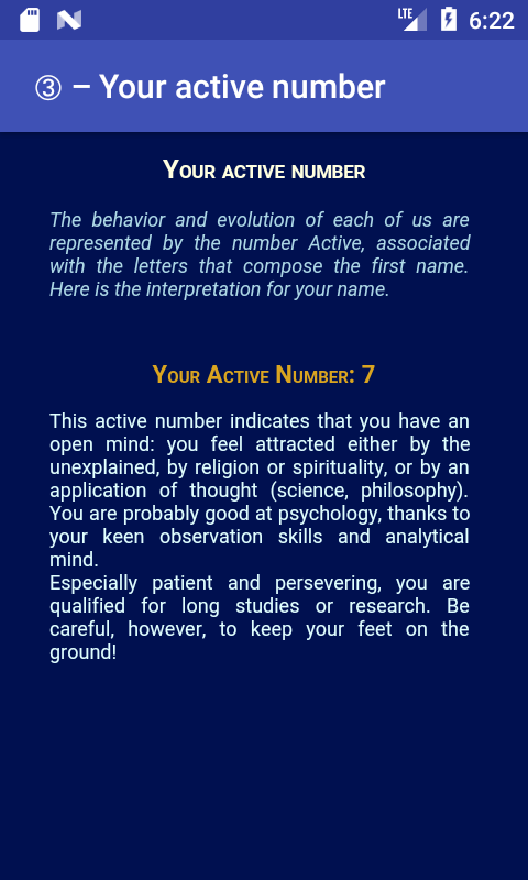 Untuk setiap data numerologi ini, aplikasi memberikan anda tafsiran lengkap mengikut Tradisi.