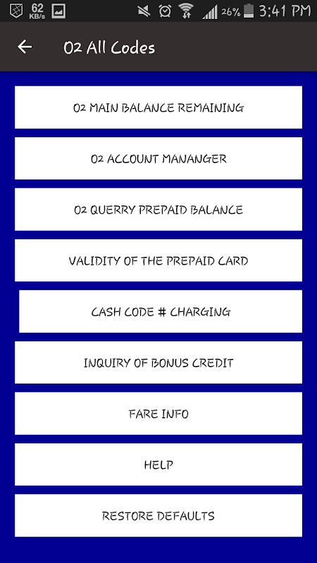 - No need to Memorize any O2 Code, you can check and dial codes from the app. The contains all O2 USSD codes.