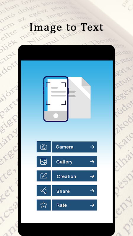 Pengimbas Teks OCR: Penukar Imej ke Teks, OCR membolehkan anda mengekstrak teks dari gambar, mengekstrak teks dari gambar tangkapan skrin dan juga mengekstrak teks dari gambar pdf. Aplikasi pengimbas ocr ini - pengimbas gambar dapat mengekstrak teks dari foto dengan mudah. Bosan dengan menaip? Cubalah aplikasi pembaca teks - pembaca teks kami yang akan membantu anda mengelakkan daripada menaip. Gambar ke Teks OCR akan mengambil teks dari gambar dan boleh membuat pdf.