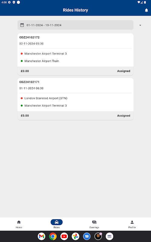 3. Sejarah Perjalanan: Akses rekod terperinci perjalanan yang telah selesai, termasuk pendapatan, tempoh dan jarak.