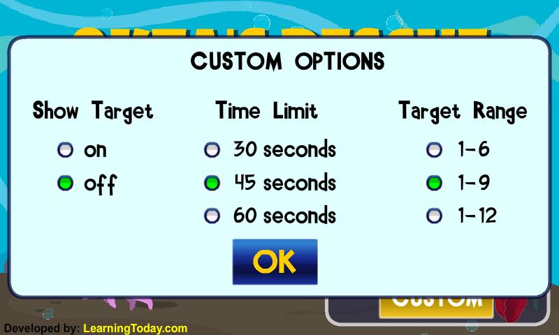 Oh, no! Okta and his friends need help. Help rescue them by transporting them to a safe ocean. How fast can you transport the Oktas? Use your counting skills to save as many as you can before the timer runs out.