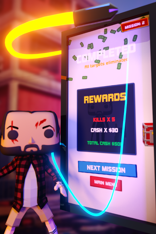 ⚈ Make one aimed shot and control the bullet to neutralize the crazy maniacs!