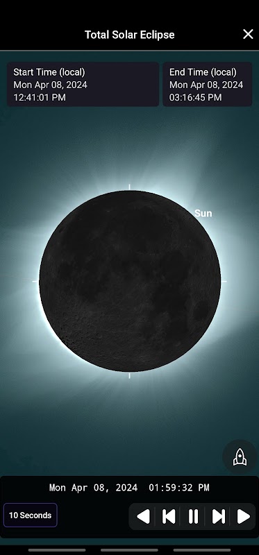 + Simulator Eclipse: Masuk ke kasut ahli astronomi dan simulasi gerhana dari lokasi anda sendiri atau mana-mana tempat di Bumi. Gunakan kawalan masa untuk memanipulasi gerhana, mengalaminya dari awal hingga akhir mengikut rentak anda.