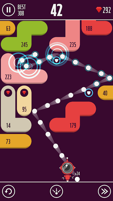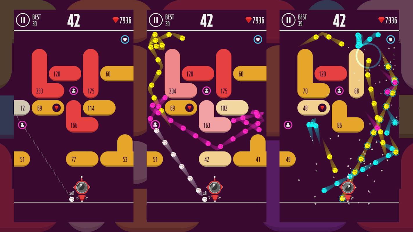 Bentuk bata baharu mencipta semua jenis susun atur menarik berbeza yang mengekalkan cabaran. Sasarkan ruang/lubang ketat yang dibuat di antara batu bata untuk mendapatkan sebanyak mungkin bola di sana dan nikmati menontonnya melantun.