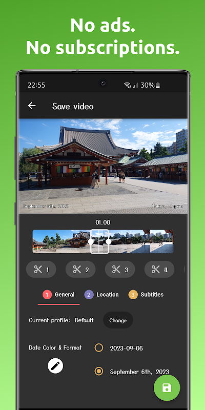 ✅ Pilih format tarikh dan warna untuk ditunjukkan di atas video